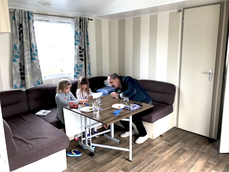 Lediglich wenn das Wetter schlecht ist, wird es etwas kritisch. Klar so ein Mobilheim ist einfach nicht groß und die Kinder hatten sich auch so sehr an ihre Freiheit gewöhnt, dass sie uns etwas entgeistert anschauten, als wir alle zusammen am Tisch saßen und etwas spielen wollten. Naja fürs Wetter kann ja niemand was. Um dem zu entgehen könnte man auch einfach nach Spanien oder Frankreich fahren. Eurocamp gibt es europaweit und hätten wir nicht schon unseren Sommerurlaub gebucht, wären wir garantiert in den Süden in ein Eurocamp gefahren. Ich fand es so herzlich und unkompliziert, ohne den fehlenden Komfort. Wenn man keine Lust auf Selbstversorgung hat, kann man immer in ein Restaurant gehen. Es ist alles so herrlich entspannt und eben frei. Ja Freiheit. Ich wiederhole mich. Wer einmal ins Campen rein schnuppern möchte, dem kann ich die Eurocamp Plätze nur empfehlen. Ich muss schon sagen, nachts nicht auf eine weiter entfernte Toilette gehen zu müssen und doch noch etwas mehr Platz zu haben als in einem Camper, ist mir schon wichtig. Camping Gefühl kommt trotzdem auf.